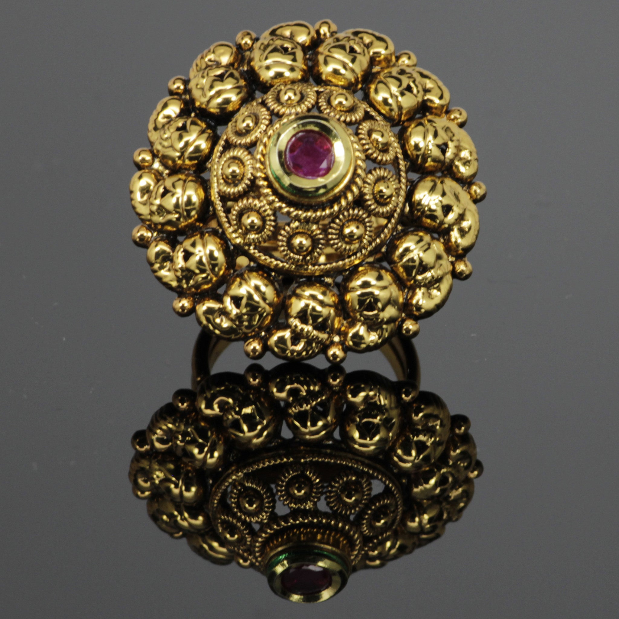 This lovely vintage inspired cocktail ring is intricately designed and textured with golden pattern which carries instant heirloom charm.