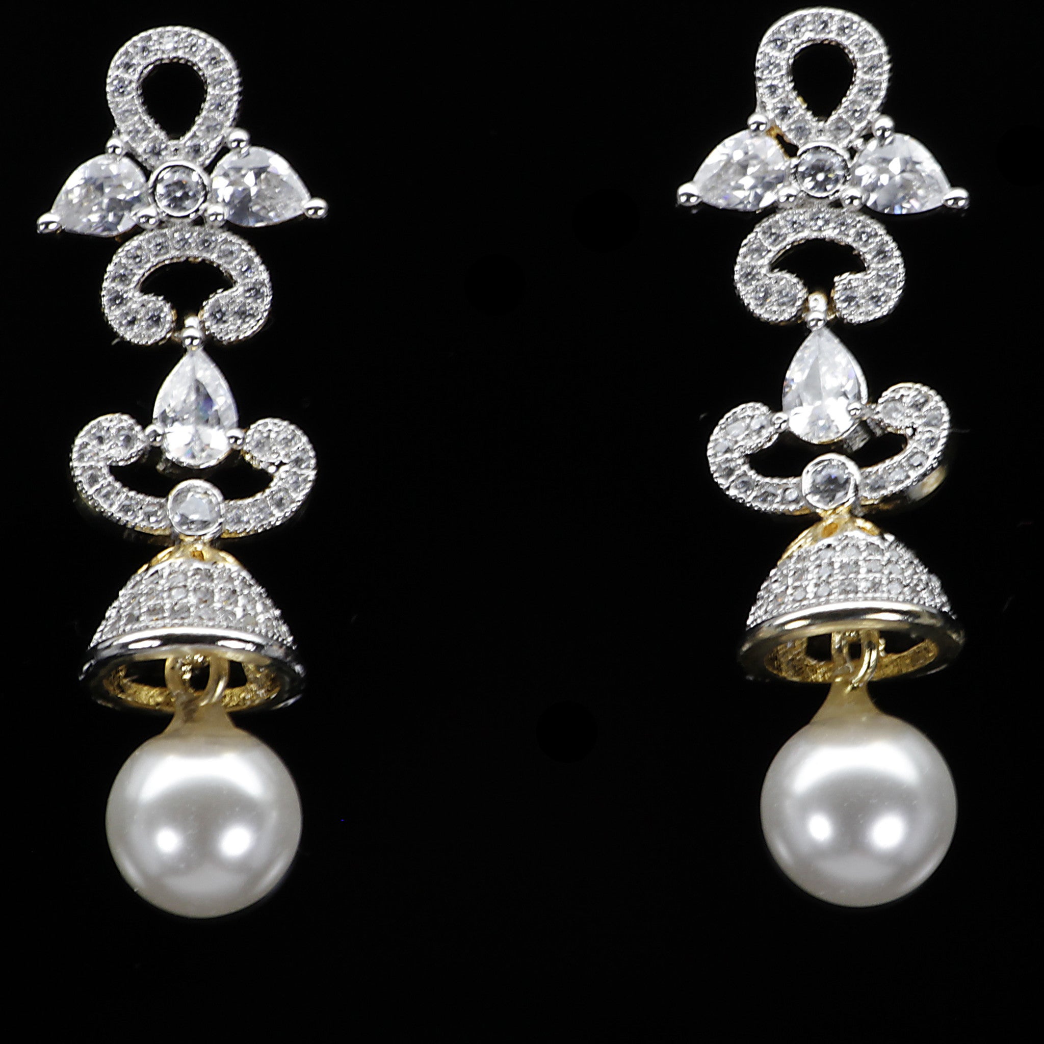 This pretty design features a luminous pearl drop topped by accent simulated diamonds and marquise. A lovely choice at any time, the pair is plated in rhodium to give lustrous shine. These earrings are Medium length.