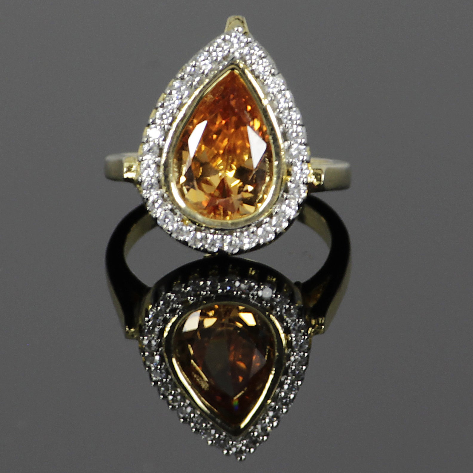 This ring features a gemstone at the center framed by accent simulated diamonds. This ring comes with additional interchangeable gemstones.